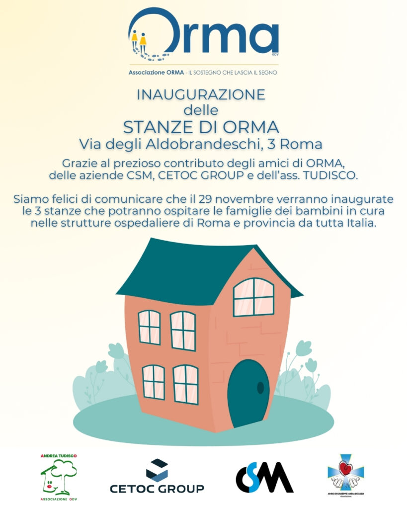 ORMA INAUGURA LE PRIME TRE STANZE PER IL “PROGETTO FAMIGLIA” Un nuovo spazio di accoglienza per le famiglie dei bambini in cura a RomaGrazie al contributo dei propri associati, l’Associazione ORMA avrà a disposizione tre stanze presso la nuova Casa Andrea Tudisco, in via degli Aldobrandeschi.Questo importante traguardo permetterà a ORMA di ospitare le famiglie […]